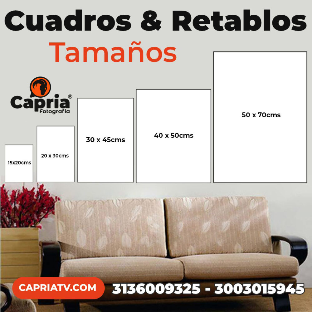 Tambien, Si requieres ampliar tus imagenes y enmarcarlas en cuadros con vidrio o retablos en tamaño 20×30 cms (carta), 30×40 cms, 40×50 cms, 50×70 cms con precios competitivos en cali con entrega en Cali.